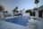A geometric pool featuring a tiered raised wall with sheer descents, diving area, spray deck, and artificial grass accents.