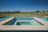 A geometric pool featuring a tiered raised wall with sheer descents, diving area, spray deck, and artificial grass accents.