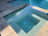 Blue Ice Harbor pebble finish creates aquamarine depths that shift color throughout the day as light conditions change. The Rall family's pool demonstrates how this finish moves from deep sapphire in morning shade to brilliant turquoise under afternoon sun, providing visual interest that flat plaster simply cannot achieve. Pebble finishes like Blue Ice Harbor also deliver superior durability and natural texture underfoot compared to traditional plaster. In the Rall project, the stone aggregate creates an organic feel while maintaining the crisp visual lines essential to their geometric pool design.